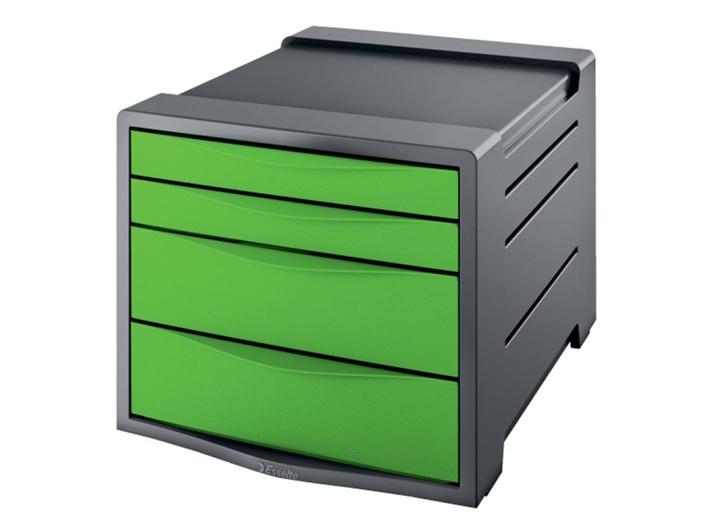 Moderný zásuvkový box so sviežimi farbami a kontrastným tmavosivým telom. Perfektne dopĺňa ostatné výrobky z radu VIVIDA, a dosahuje tak jednotný vzhľad kancelárie. Farba zelená.