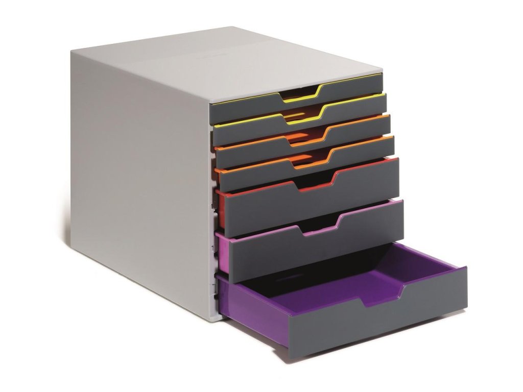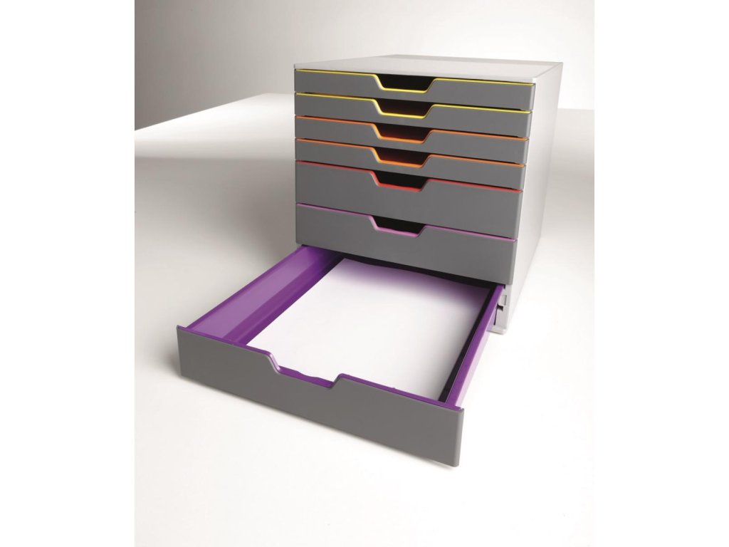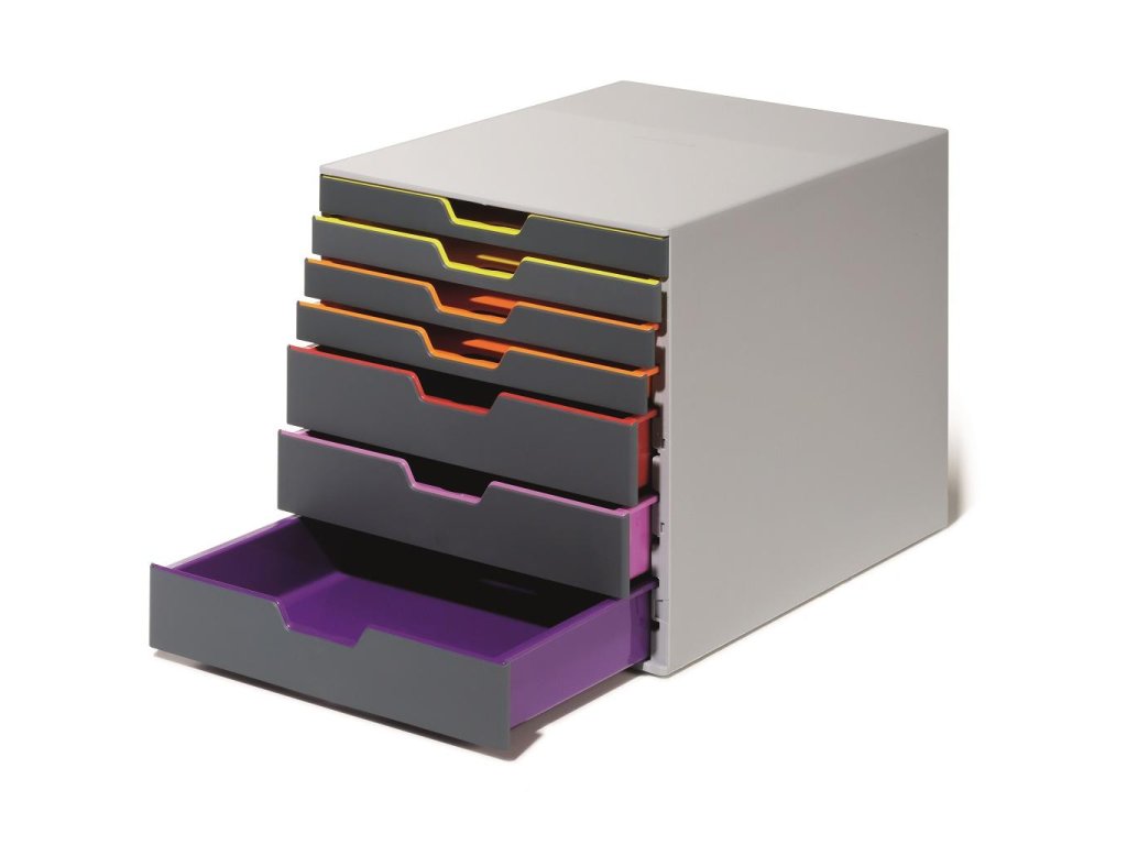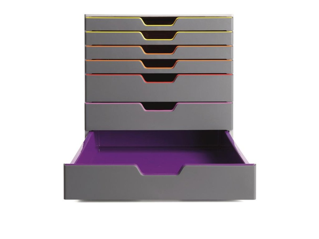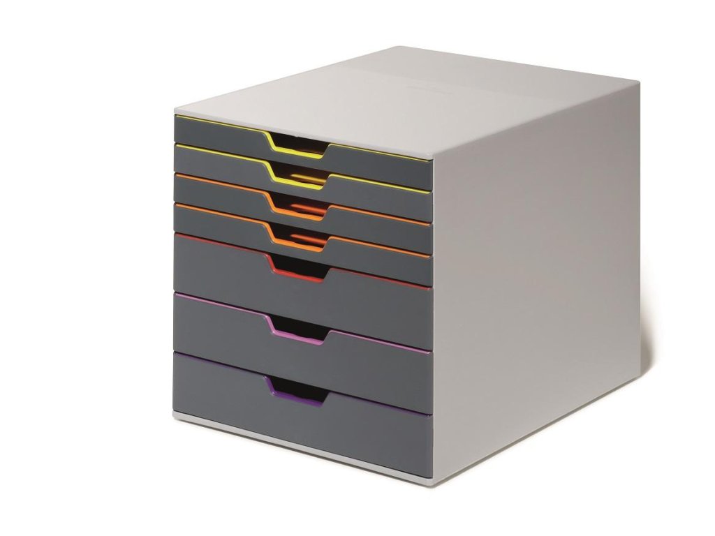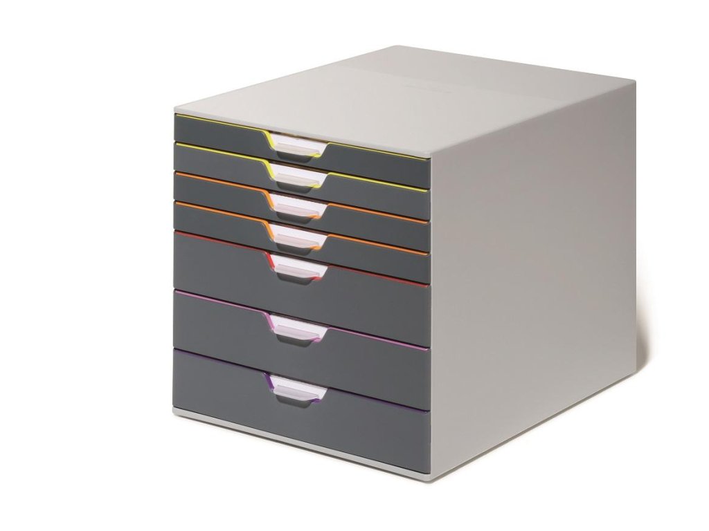 Boxy so 7 zásuvkami s vnútrami dúhových farieb dodajú kancelárii nádych elegancie. Pri ich zatvorení farebné línie iba jemne vystupujú z elegantnej sivej farby, pri otvorení sú žiarivé farby dúhy potešením pre oči. Dodávané s priehľadnými plastovými indexami na označenie obsahu. Boxy sú stohovateľné, zásuvky zabezpečené proti vypadnutiu. Materiál najkvalitnejší ABS plast, tichý a ľahký posun zásuviek, spodná strana s protišmykovou ochranou. Víťaz Product design award 2013. Rozmery (š × v × h) 292 × 280 × 356 mm.