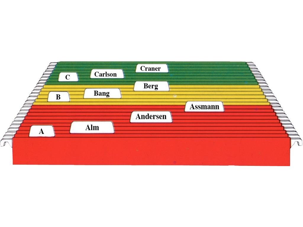 Závesné obaly Esselte kolekcie Classic vyrobené z pevného kartónu. Lisované dno obalu dovoľuje zvýšiť kapacitu na 30 mm. Súčasťou obalu je násuvný index z priehľadného plastu s výmenným papierovým štítkom. Formát A4, rozpätie vodiacich líšt 330 mm. Dodávané spolu s 5 kartónovými prúžkami na spevnenie dna. Balenie 10 ks v mixe farieb.