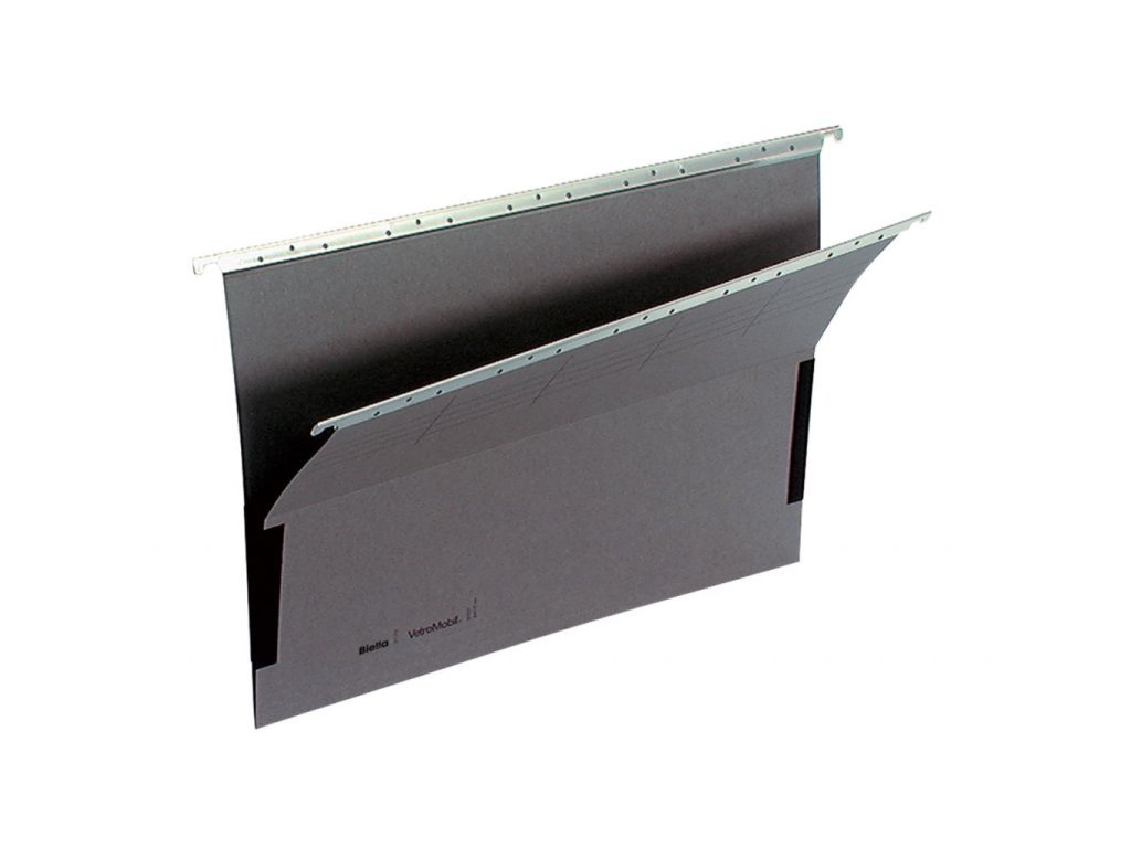 Závesný obal z recyklovaného kartónu gramáže 315 g vystužený nylonom na zakladanie voľných listov do formátu A4. Vybavený bočnicami a kovovými háčikmi na dlhodobé používanie. Predná strana sa dá zložiť na polovicu pre ľahšie prehliadanie vložených dokumentov. Farba sivá.