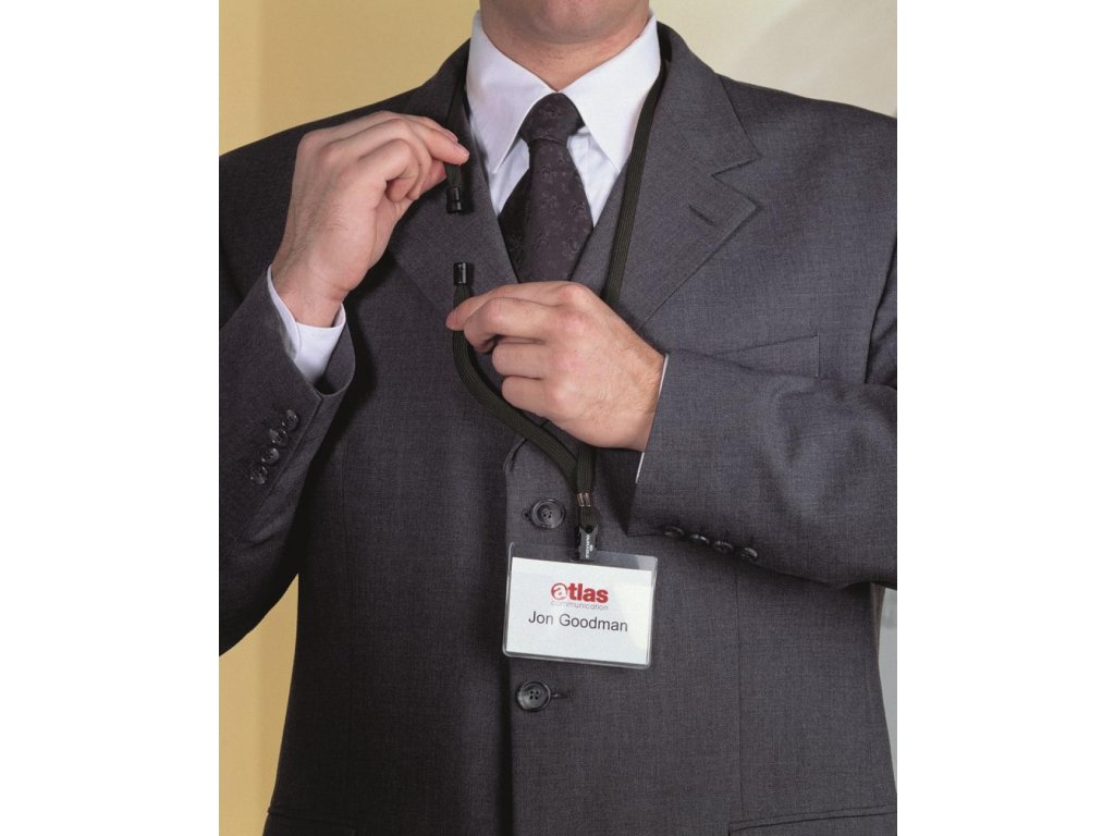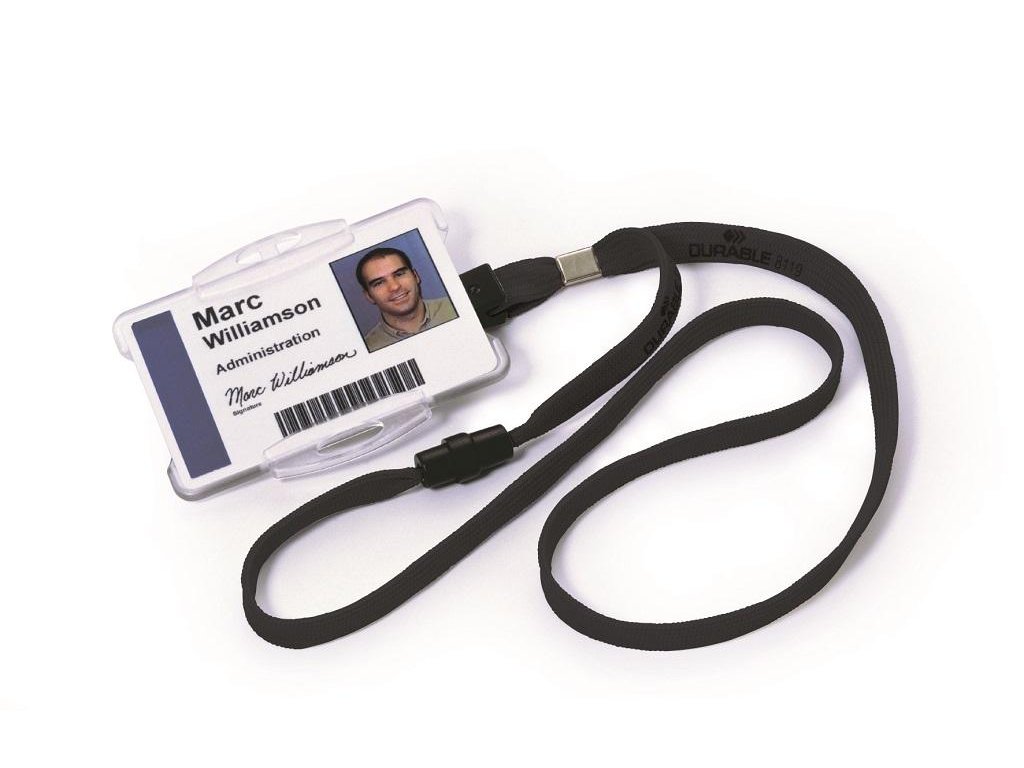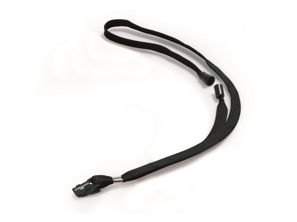 Remienok s bezpečnostnou poistkou. Poistka sa uvoľní pri zachytení remienka alebo silnom potiahnutí. Vhodný ku všetkým visačkám značky Durable. Dĺžka 44 cm, šírka 10 mm. Balenie 10 ks.