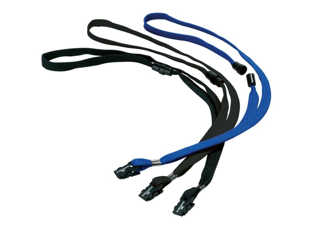 Remienok s bezpečnostnou poistkou. Poistka sa uvoľní pri zachytení remienka alebo silnom potiahnutí. Vhodný ku všetkým visačkám značky Durable. Dĺžka 44 cm, šírka 10 mm. Balenie 10 ks.