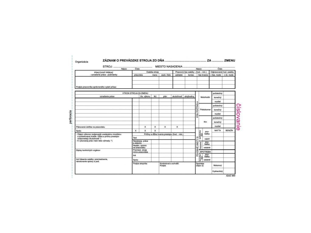 Tlačivo : Záznam o prevádzke stroja A5 číslovaný, balenie 100 listov.
