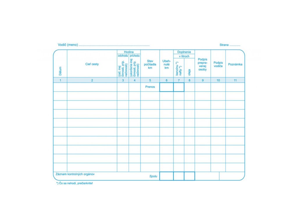 Záznam o prevádzke vozidla osobnej dopravy, A5, blok, 100 listov