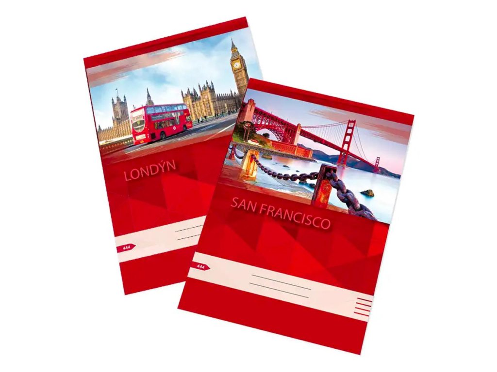 Veľký 40 listový zošit 444 s klasickými linajkami (8 mm) z hladkého bezdrevného papiera, pre základné a stredné školy, balený vo fólii po 10 ks.