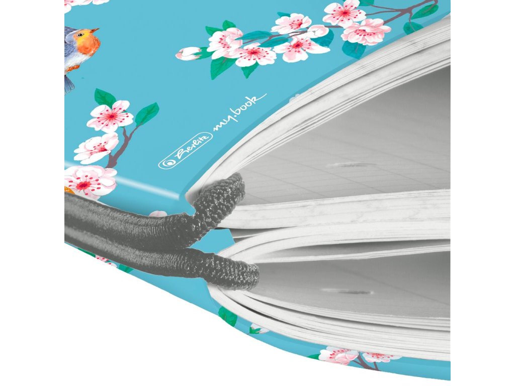 Zošit my.book flex Ladylike Vtáky, zaoblené rohy, so sivou gumičkou na zatváranie. 40 listov linajky, 40 listov štvorčeky.