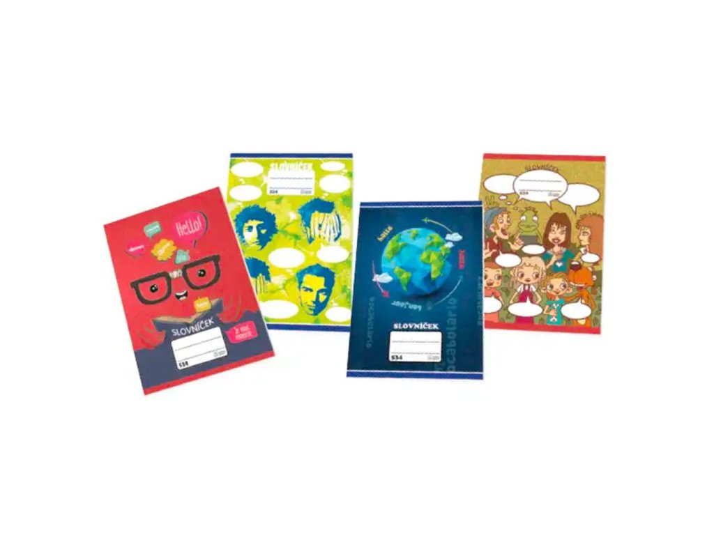 30 listový zošit na slovíčka pre deti aj dospelých. Formát A5, linky 8 mm a 2 kolmice pre cudzojazyčné slovo, jeho výslovnosť a preklad vhodné pri výučbe akéhokoľvek cudzieho jazyka. Školské zošity sú vyrobené z kvalitného bezdrevného zošitového papiera. Obálka: obojstranne natieraný ofsetový papier s detským motívom a motívom pre dospelých.