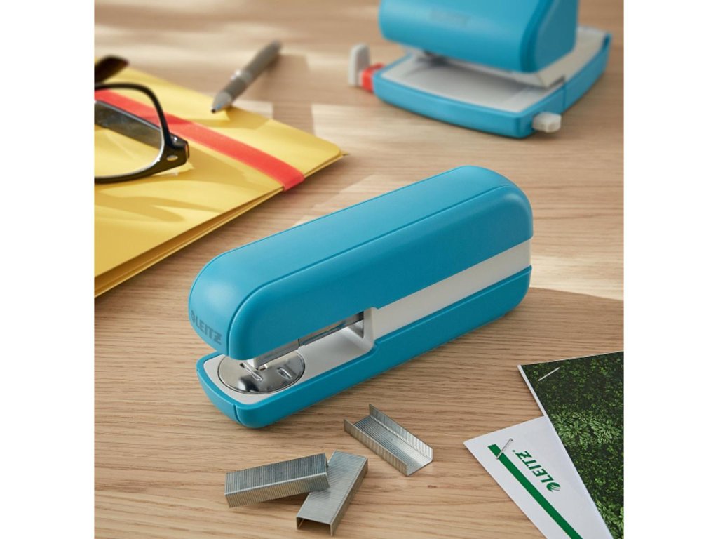 Zošívačka na papier prvotriednej kvality Leitz Cosy je pevná a spoľahlivá zošívačka na 30 hárkov papiera (80 g/m2) s patentovanou zošívacou DIT technológiou (Direct Impact Technology) zaručuje vždy jednoduché a presné zošitie. Farba kľudná modrá.
