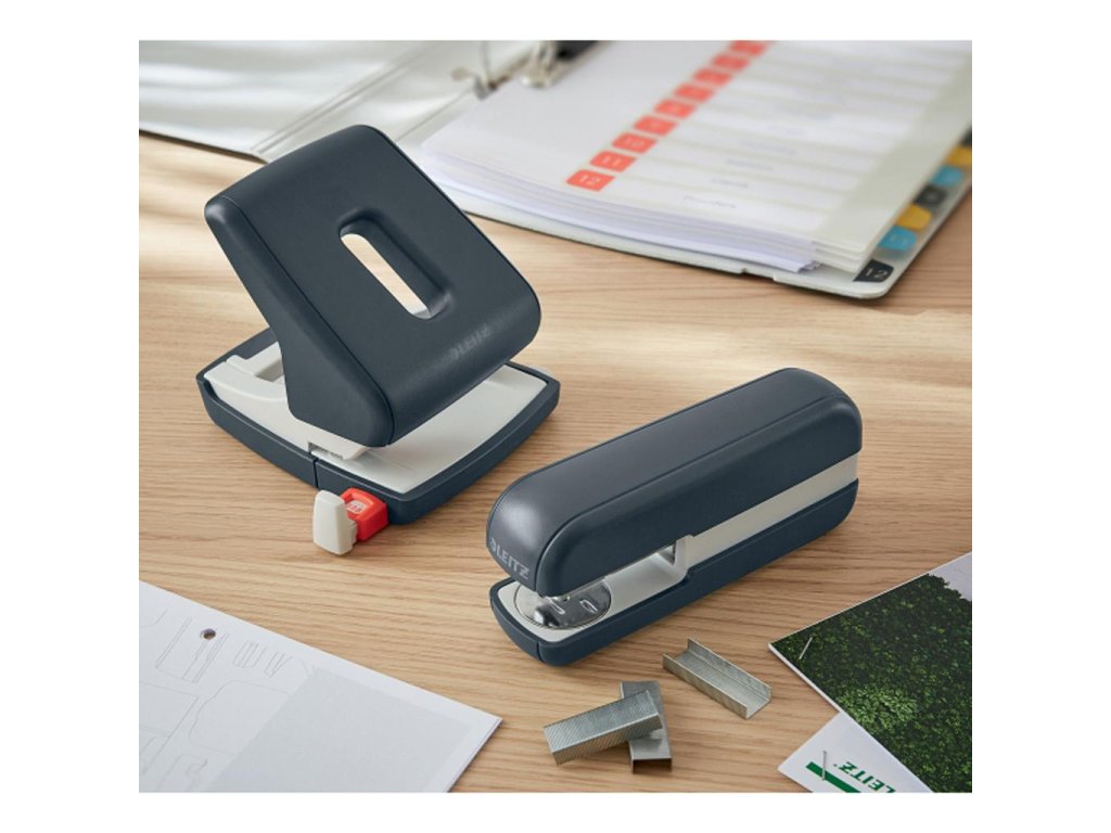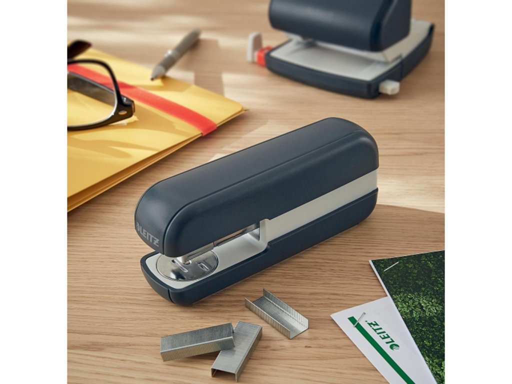Zošívačka na papier prvotriednej kvality Leitz Cosy je pevná a spoľahlivá zošívačka na 30 hárkov papiera (80 g/m2) s patentovanou zošívacou DIT technológiou (Direct Impact Technology) zaručuje vždy jednoduché a presné zošitie. Farba zamatová sivá.