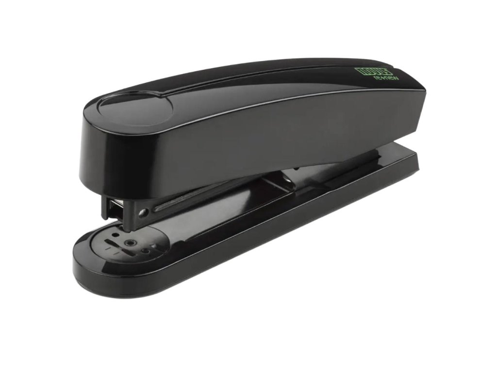 Zošívačka pre použitie doma alebo v domácich kanceláriách z kolekcie šetrnej k životnému prostrediu re+new, s vrchnou časťou vyrobenou z 95% recyklovaného plastu. Kovový zásobník, jednoduché vedenie spiniek, kapacita náplne 100 spiniek 24 / 6 alebo 150 spiniek 26 / 6. Hĺbka zošívania 6,5 cm. Hmotnosť 175 g. Záruka 10 rokov. Súčasťou balenia je 200 spiniek 24 / 6 DIN SUPER. Kapacita 25 listov. Farba čierna.