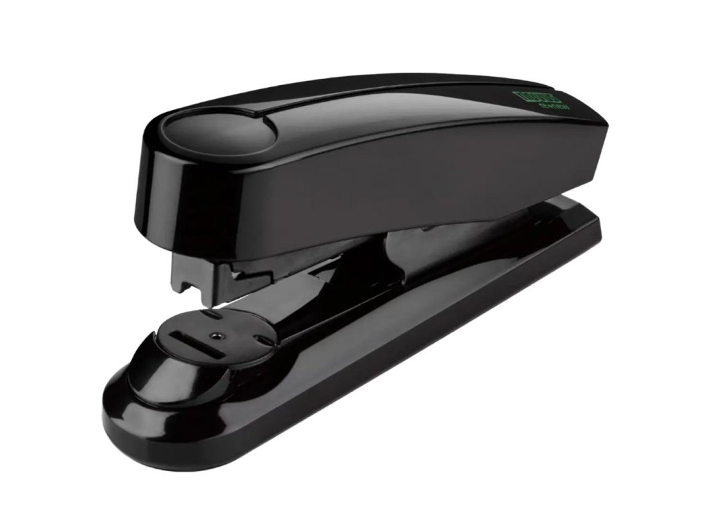 Stolová zošívačka s veľkou kapacitou súčasne zošitých listov so systémom plochého zošívania (Flat-Clinch), umožňujúca superľahké zošívanie a z kolekcie šetrnej k životnému prostrediu re+new, s lesklým plášťom z 80% recyklovaného plastu. Kovový zásobník s dvojitým vedením spiniek. Kapacita náplne 100 spiniek 24 / 6 - 8 alebo 150 spiniek 26 / 6 - 8. Hĺbka zošívania 6 cm. Hmotnosť 265 g. Záruka 25 rokov. Súčasťou balenia je 200 spiniek 24 / 6 DIN SUPER. Kapacita 50 listov. Farba čierna.