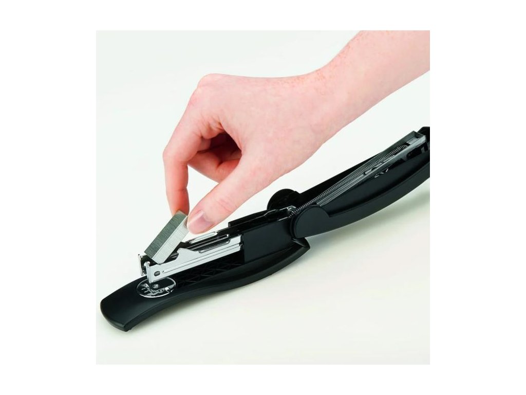 Kancelárska zošívačka na stôl aj do ruky v modernom dizajne. Zásobník spiniek s plastovým osadením a jednoduchým vedením spiniek. Kapacita náplne 100 spiniek 24/ 6 alebo 26/ 6. Hĺbka zošívania 6,5 cm. Hmotnosť 140 g.