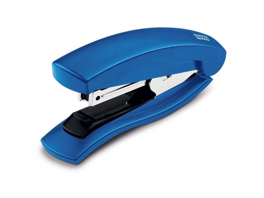 Celokovová kancelárska zošívačka s plastovým vrchným dielom a jednoduchým vedením spiniek a s vlastnosťou plochého zošívania. Kapacita náplne 100 spiniek 24/ 6 alebo 150 spiniek 26/ 6. Zošívanie so zníženým úsilím. Hĺbka zošívania 6 cm. Hmotnosť 245 g. Záruka 5 rokov.