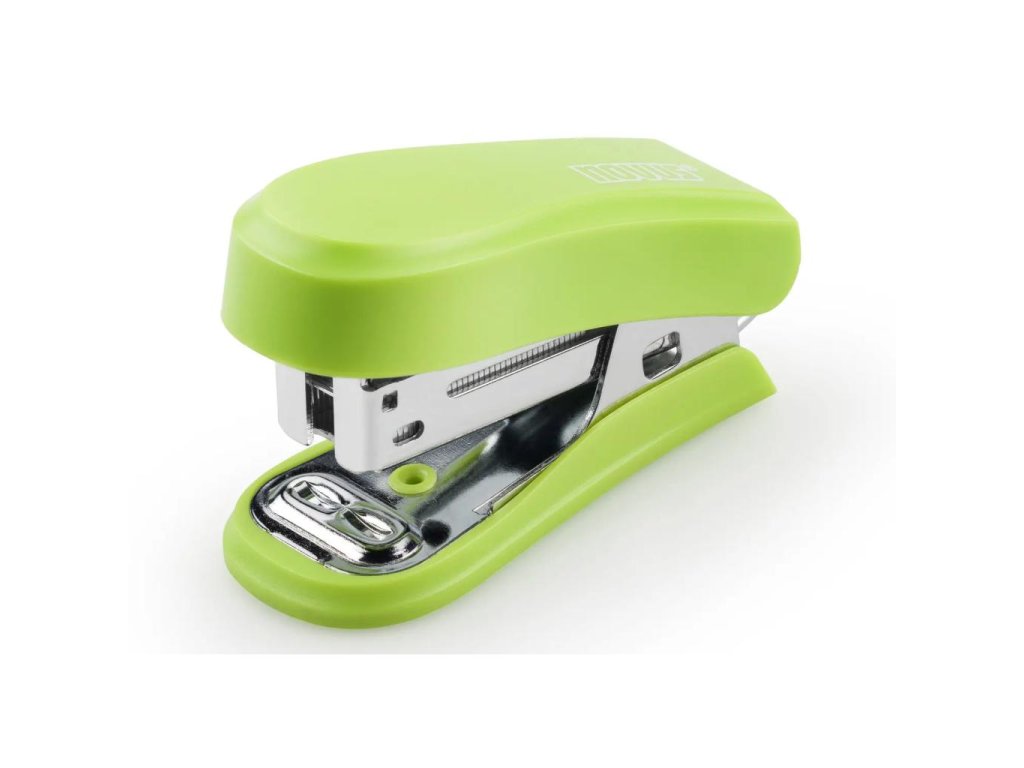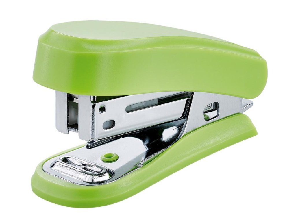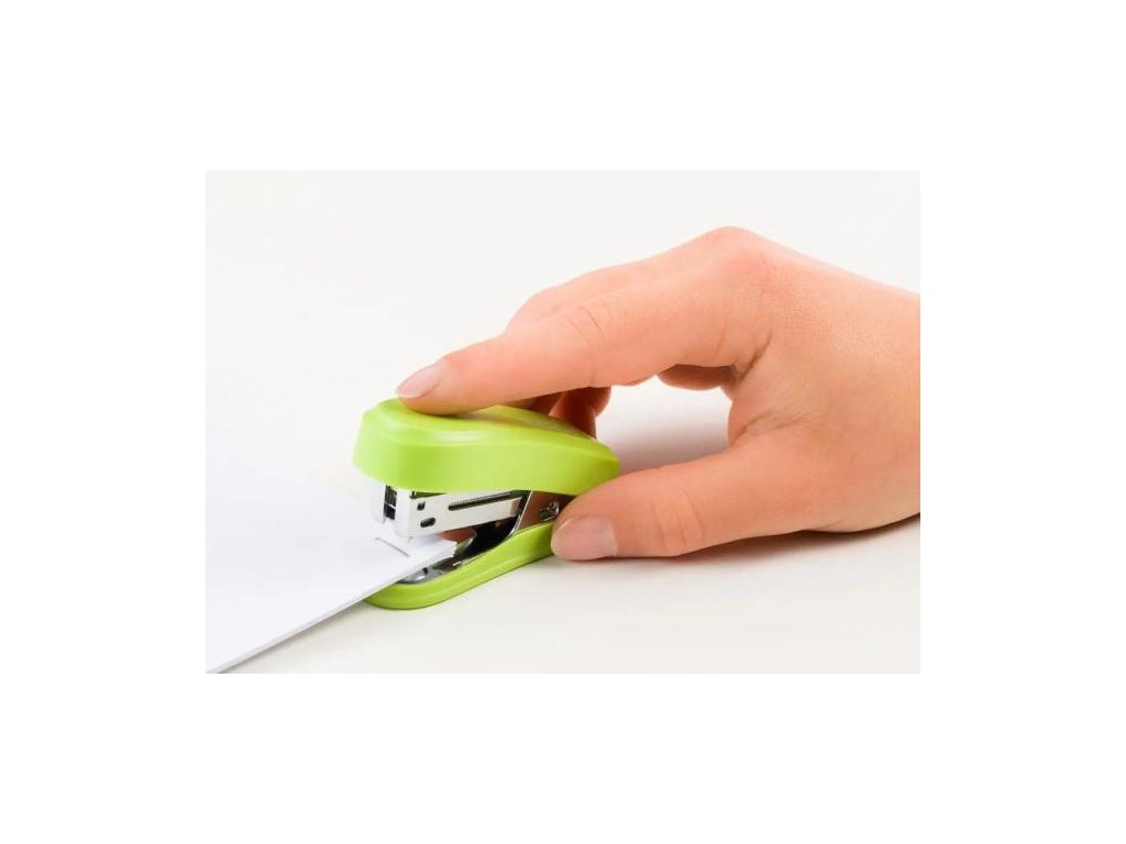 Malá kancelárska zošívačka Novus MINI s jednoduchým vedením spiniek a integrovanou kovovou rozošívačkou. Vhodné spinky 24/ 6 a 26/ 6. Hĺbka zošívania 2,5 cm, kapacita zošívania 12 listov papiera. Dodávaná s 320 ks spiniek 24/ 6 v blistrovom balení.