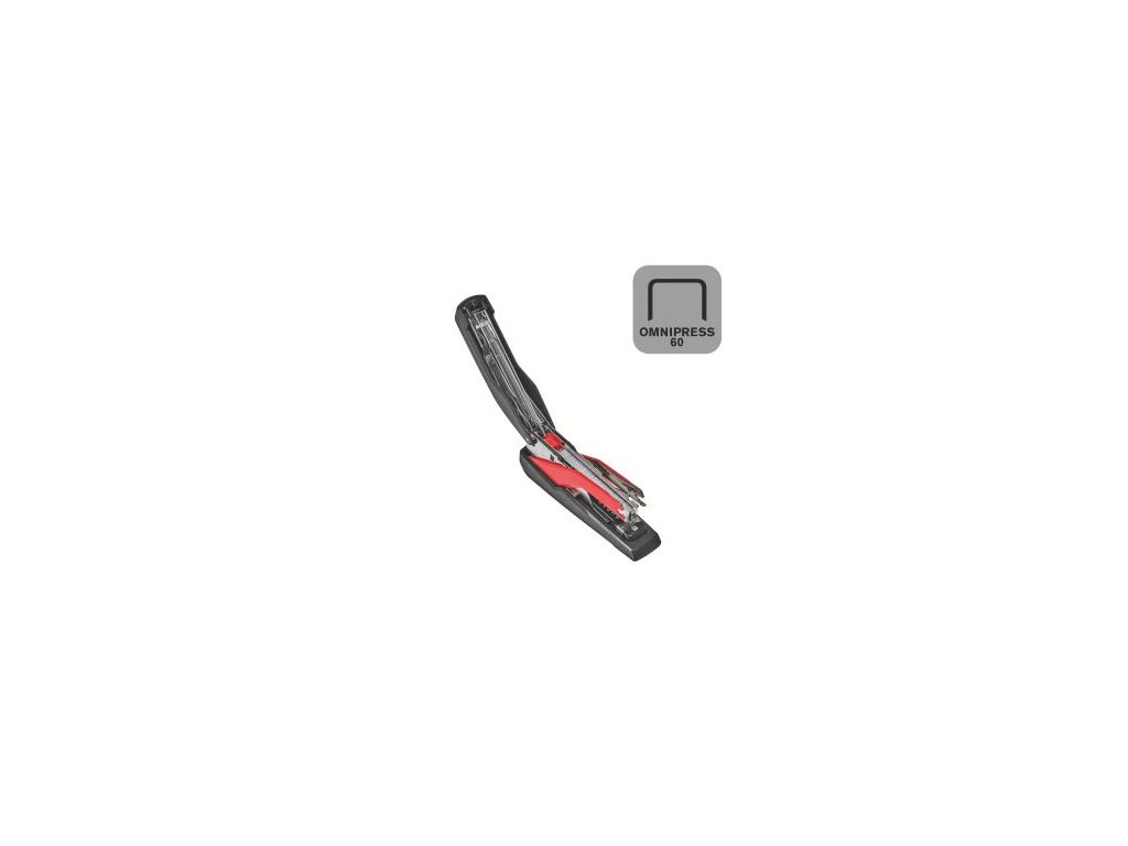Revolučná zošívačka kompaktných rozmerov a s klasickou kapacitou zásobníka, vybavená patentovanou technológiou Omnipress®, ktorá umožňuje s minimom sily stlačiť zošívačku po celom jej tele a ľahko tak zošiť dokument na stole i v ruke. To všetko v kombinácii s technológiou super plochého zošívania SuperFlatClinch prinášajúcou 40 % úsporu miesta pri zakladaní takto zošitých dokumentov. Farba čierna/červená.