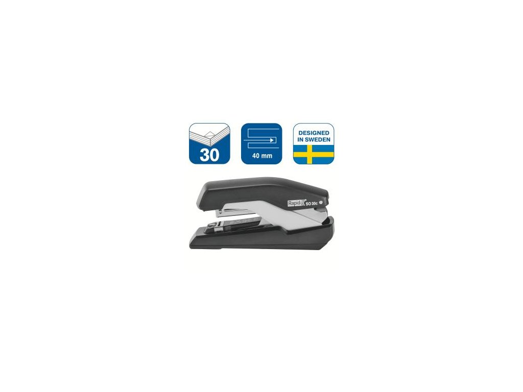 Revolučná kompaktná zošívačka, vybavená patentovanou technológiou Omnipress®, možno stlačiť kdekoľvek, aby ste ušetrili všetku námahu pri zošívaní, či už sa používa na stole alebo v ruke. Jedinečná technológia Super Flat Clinch znižuje stoh papiera o 40 %.