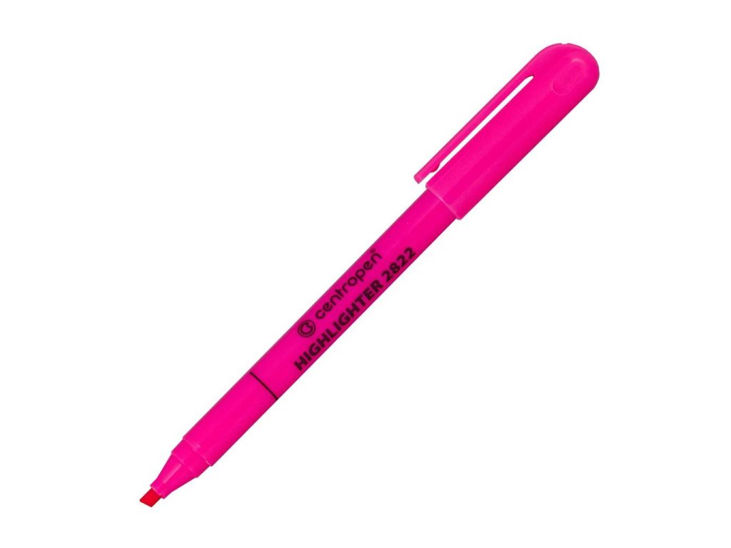 Zvýrazňovač osadený klinovým hrotom so šírkou stopy 1 - 3 mm. Plnený fluorescenčným atramentom, vhodným na všetky druhy papierov, vrátane kopírovacích a faxových. Väčšie balenie 10 ks.