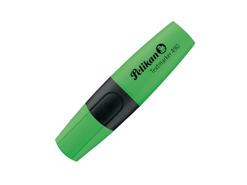 Zvýrazňovač Pelikan 490 osadený klinovým hrotom so šírkou stopy 1 - 5 mm. Plnený atramentom na vodnej báze, vhodným na všetky druhy papierov, odolný voči vysychaniu. Balenie v krabičke. Farba zelená.
