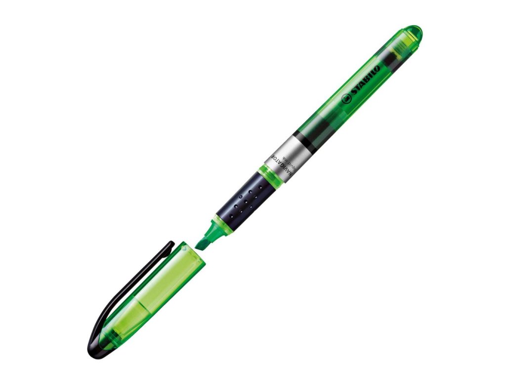 Štíhly zvýrazňovač s praktickým klipom a technológiou Anti‑Dry‑Out so 4 hodinami ochrany proti vysychaniu atramentu. Vhodný pre školákov i manažérov, ktorí často pracujú na cestách. Mäkká úchytová zóna na pevné držanie, robustný hrot, priehľadné telo, rovnomerná spotreba atramentu až do poslednej kvapky. Atrament na vodnej báze vhodný pre prácu s papierom, kópiami a faxom. Hrot zrezaný, šírka stopy 1 -4 mm. Väčšie balenie:10 ks v jednej farbe, farba zelená.